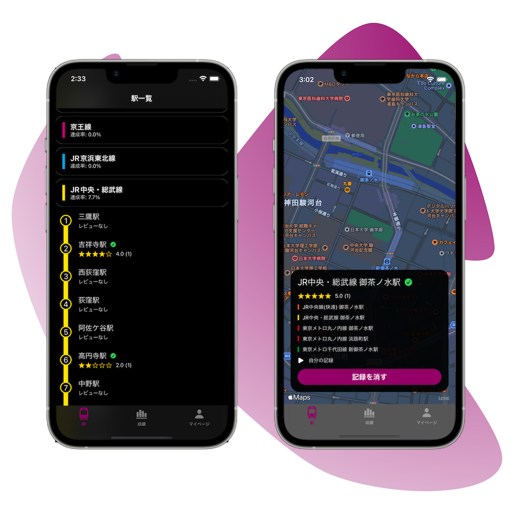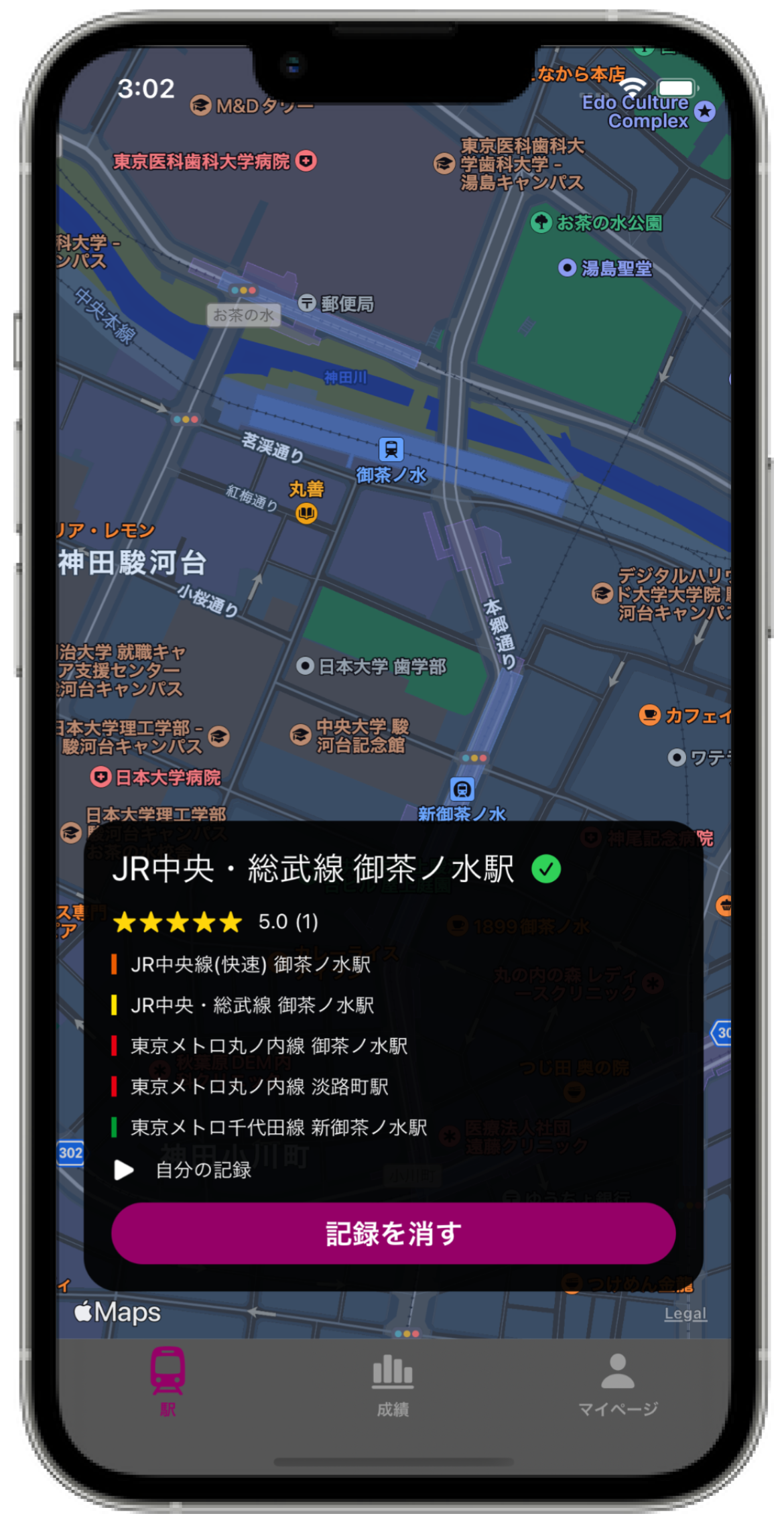 近くの他の路線の駅も同時に記録すること「も」できます。同じ駅でも路線のによってテイストが違うこともあります。それぞれで記録を付けることが可能で、あなたの好みに応じた使い方をすることができます。