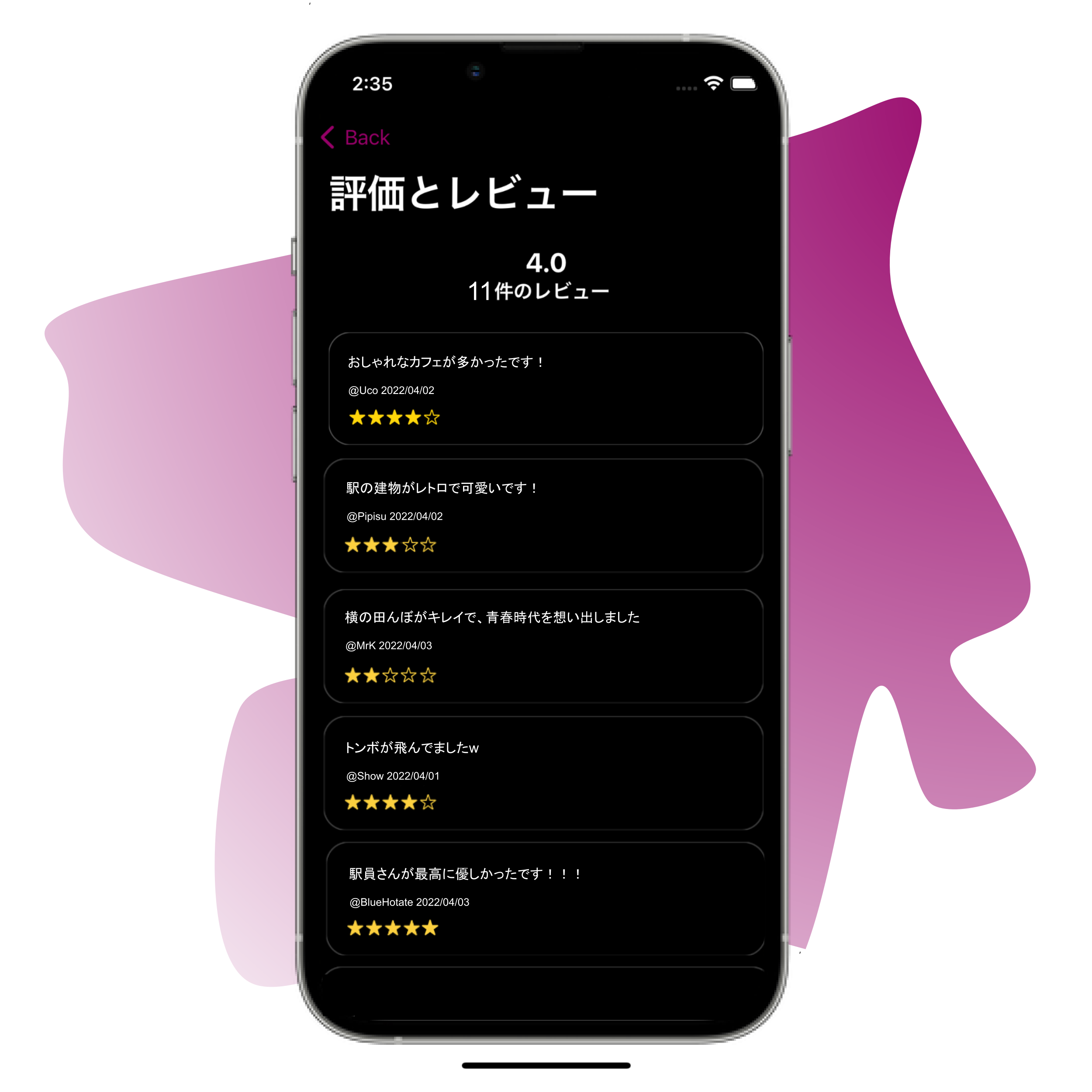 駅といっても周りのレストラン・駅自体の建物・そこに生きている人など多彩な「味」があります。いろんな人のレビューも読んで、地図で探索して、気になる駅を探してみましょう。きっとあなたの魅了する駅がたくさんあります!